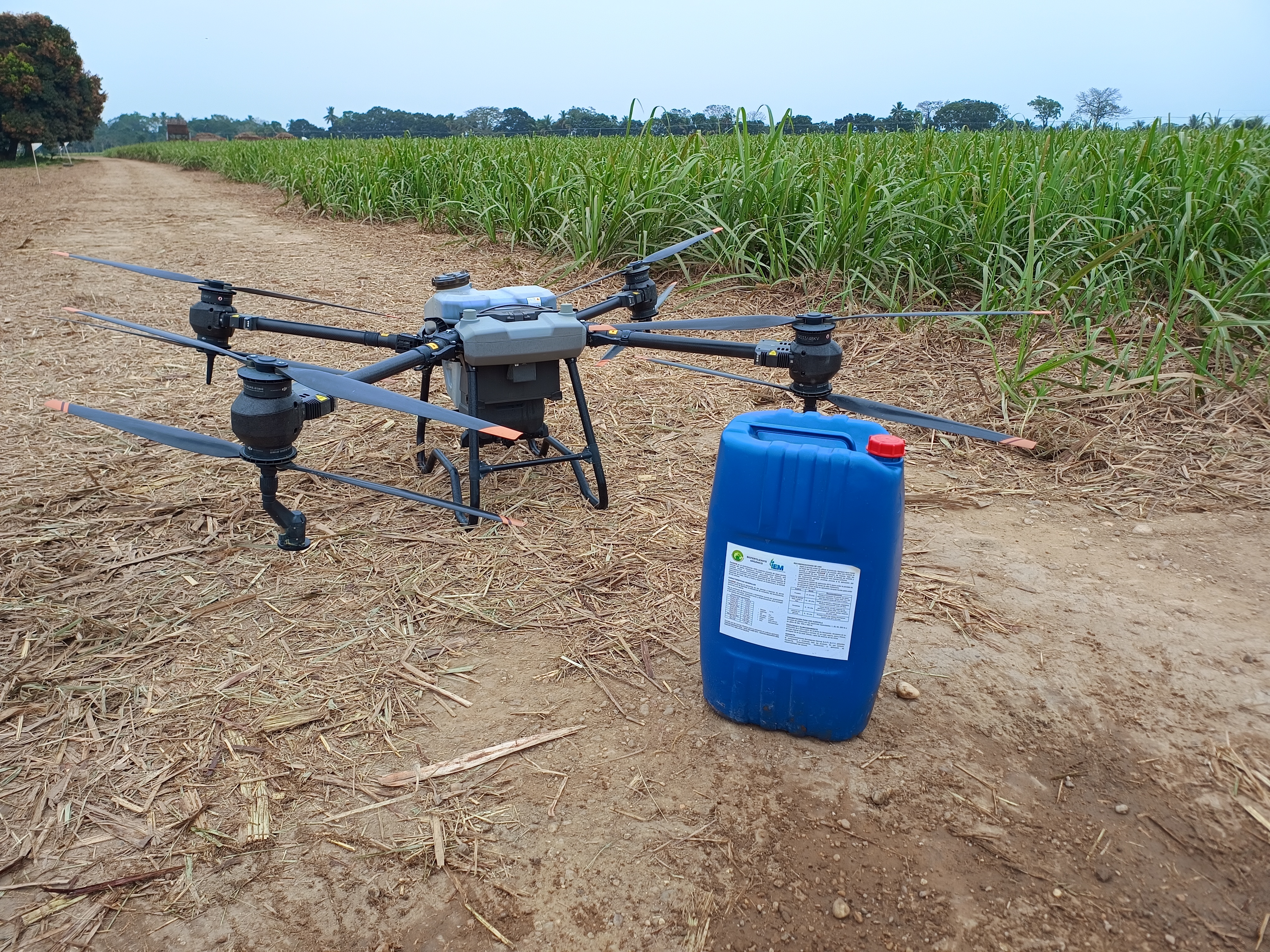Aplicación de nuestro biofertilizante orgánico FertiDEM® mediante sistema dron Agras T40 con tecnología de aplicación por aspersión centrifuga.